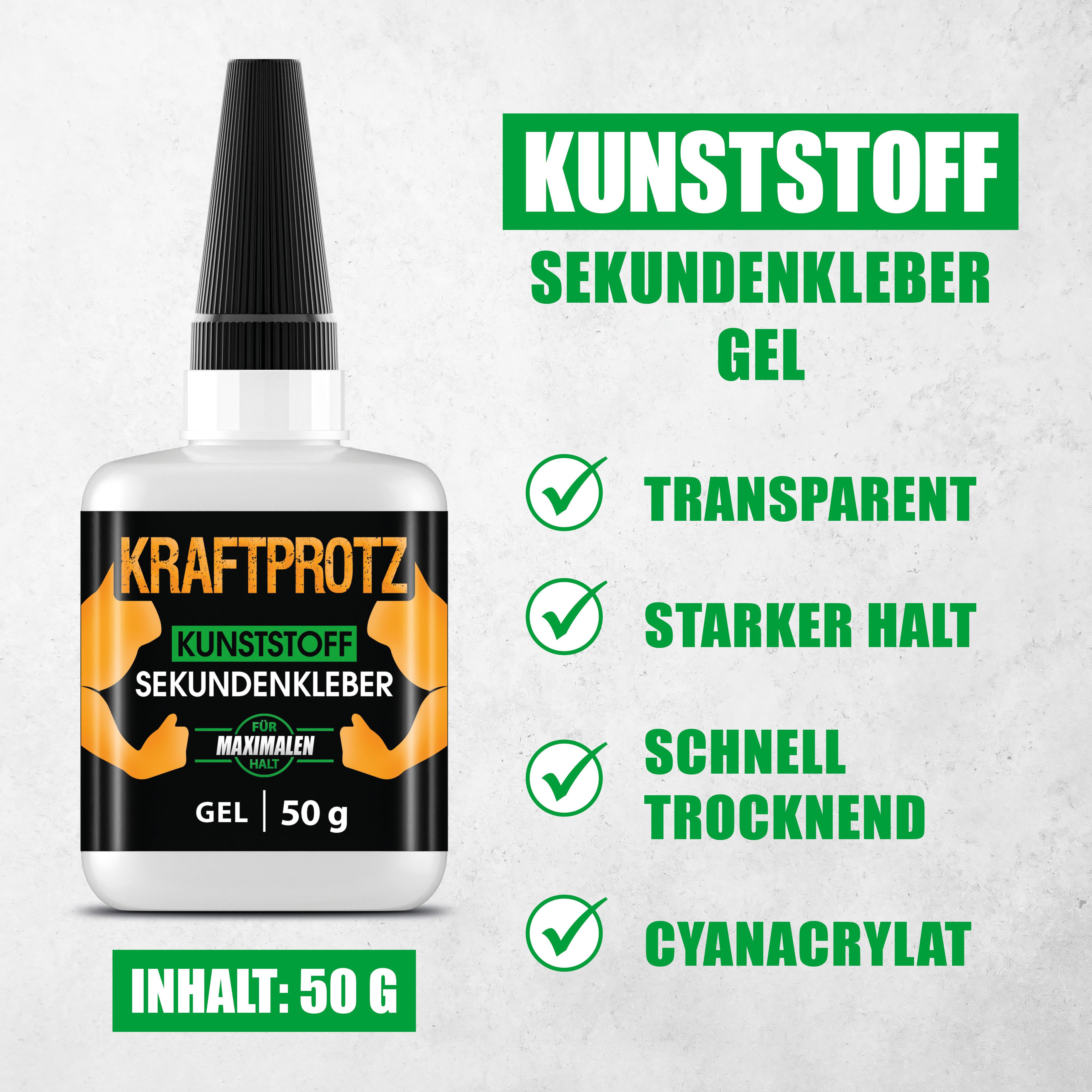 Produktinformationen "Kraftprotz Kunststoff Sekundenkleber 50 g"