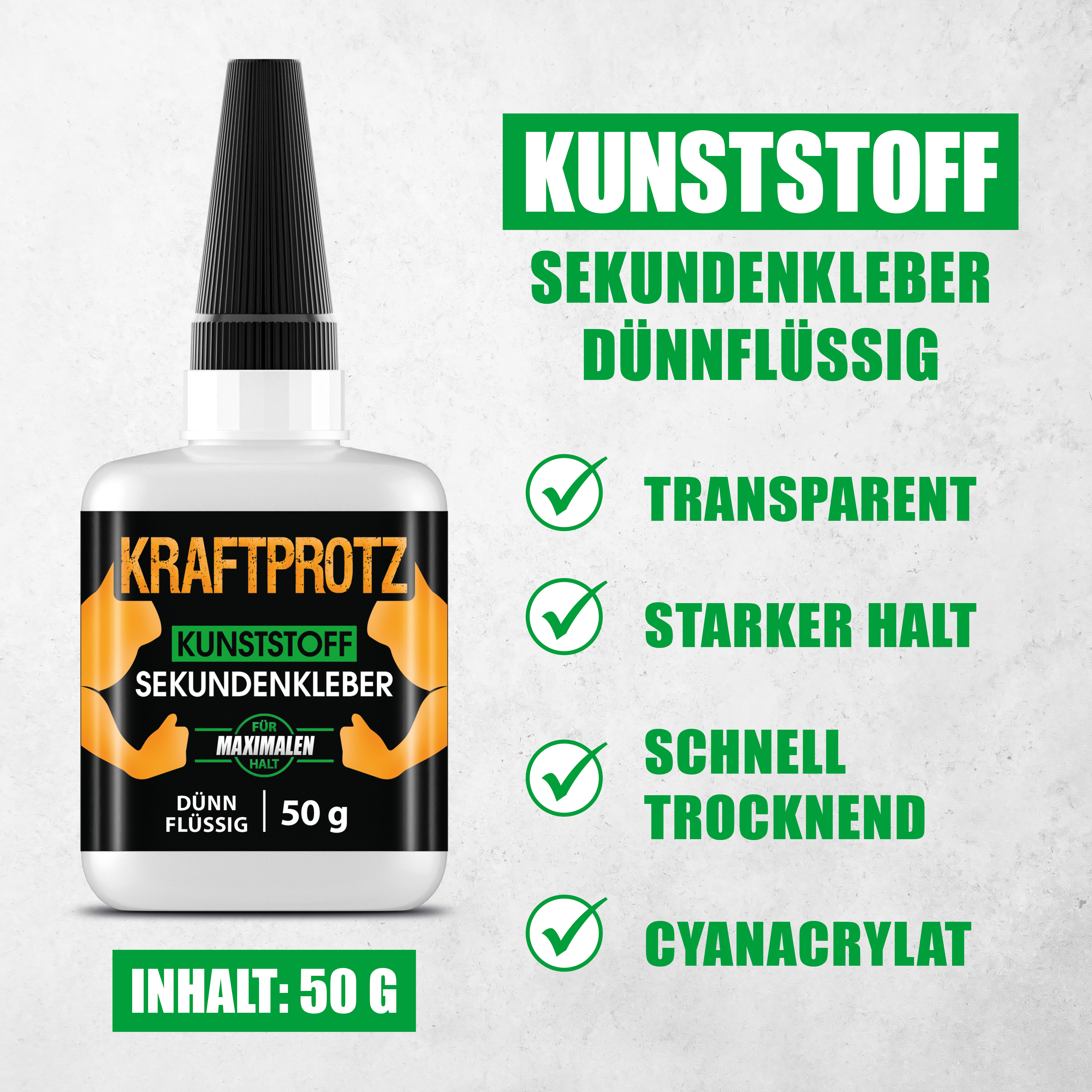 Produktinformationen "Kraftprotz Kunststoff Sekundenkleber 50 g"