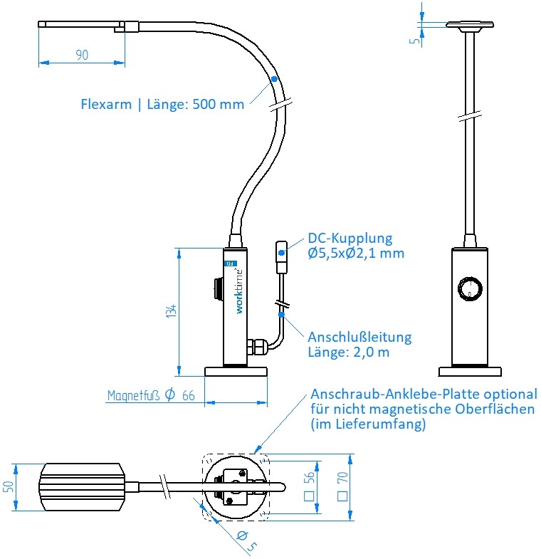 Die worktime® LED Flexarmleuchte cobrex dient zur gezielten Beleuchtung der Arbeits- und Wirkbereiche von Maschinen- und Produktionsanlagen – und das mit einer sensationellen Lichtqualität dank dem Einsatz von THRIVE™-LEDs von Bridgelux®. Der flexible Arm ermöglicht eine optimale Ausrichtung. Ausgestattet mit einem gummierten Magnetfuß kann die cobrex Flexarmleuchte sofort ohne Installationsaufwand eingesetzt und jederzeit umplatziert werden. Für unmagnetische Oberflächen dient die mitgelieferte Anschraub- und Anklebe-Platte. Alle Komponenten der LED Flexarmleuchte sind wasserdicht und  resistent gegenüber gängigen Kühl- und Schmierstoffen. Insbesondere der kristallklare Vollverguß isoliert die LED-Elektronikplatine sicher von der Umwelt.